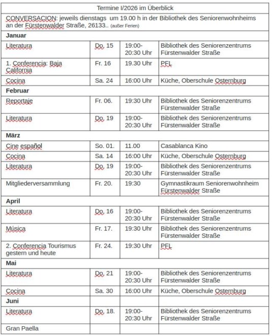 auf der Homepage von CAMINOS, der Deutsch-Spanisch-Hispanoamerikanische-Gesellschaft Oldenburg e.V.. Wir bieten über das Jahr verteilt ein vielfältiges kulturelles Programm. Besuchen Sie uns bei unseren Veranstaltungen und partizipieren Sie an der Kultur - Spaniens und Hispanoamerikas. Wir freuen uns auf Ihren Besuch, und .... vielleicht haben Sie ja Lust Mitglied bei uns zu werden.