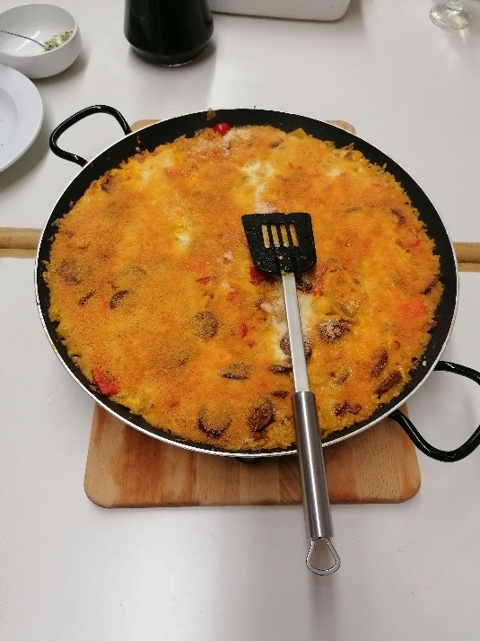 Gemeinsam kochen und probieren wir spanische und hispanoamerikanische Gerichte. Wir treffen uns samstags nachmittags in der Küche der Oberschule Osternburg. In kleiner Runde (maximal 16 Personen) kochen wir in der Küche der OBS Osternburg spanische und hispanoamerikanische Gerichte. Beim gemeinsamen Schnippeln trinken wir dabei ein Gläschen Wein oder Wasser.